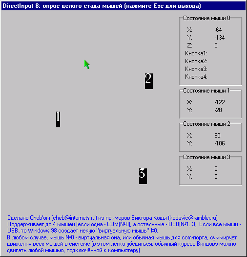 Тестовая программа для демонстрации целого стада USB мышей, подключённых