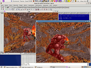 This screenshot: Win32- and Linux-versions of CGE coexist peacefully on a single Gnome desktop. What is funny, they both run smoothly, with a full hardware acceleration.
