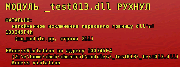 I've implemented a workaround for the FreePascal bug #4605 (wrong exception handling in dll). Now instead of using an useless try..except block, the game module (an dll) calls the wrapper procedure of the mother module (an exe) that calls the desired procedure of the game module wrapping it in its own try..except block. Weird? Yes. Perverted? Yes. But it works and it solves the problem.